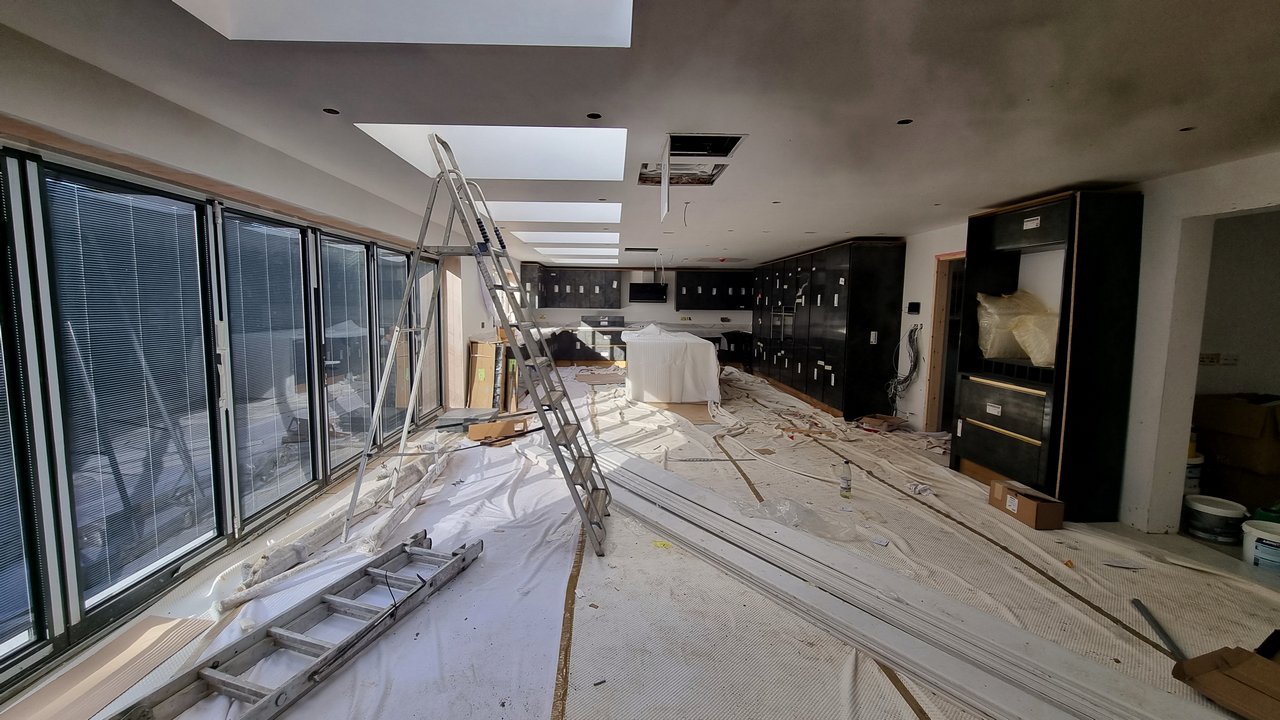 - Large rear ground-floor opening supported with a structural box frame to carry the first-floor structure and rear elevation.
